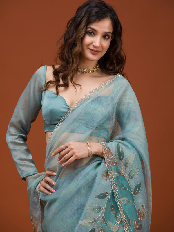 Sky Blue Printed Tissue Saree