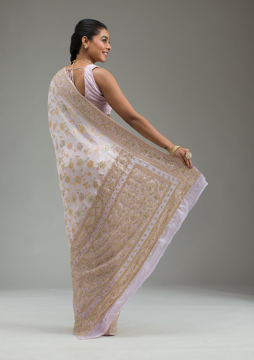 Lavender Saree in Taffeta Silk fabric The Saree is elevated with Plain embroidery It comes with an Unstitched blous.